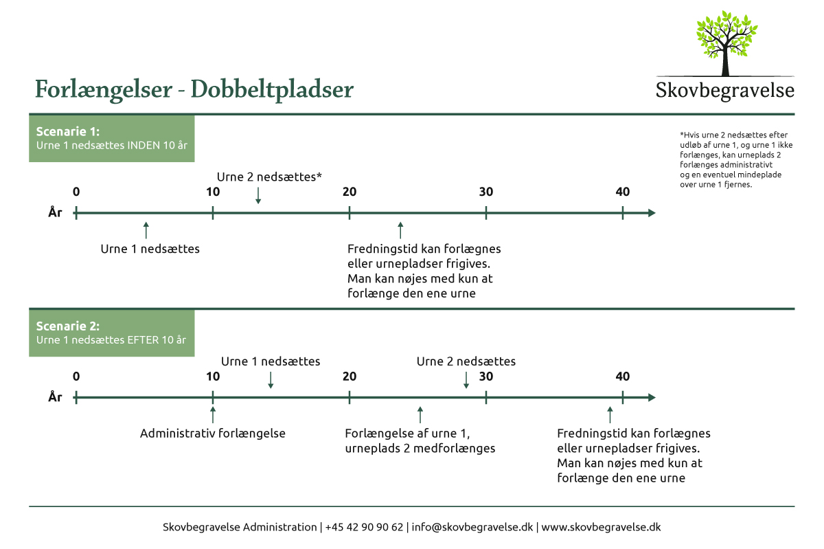 Der er altid 10 års gravstedsfredning fra en urnenedsættelse. Derfor har du altid gravstedet i min. 10 år, fra den dato, urnen nedsættes – også selvom urnenedsættelsen eks. først er 9 år efter et gravsted er forhåndserhvervet til fremtidig anvendelse.