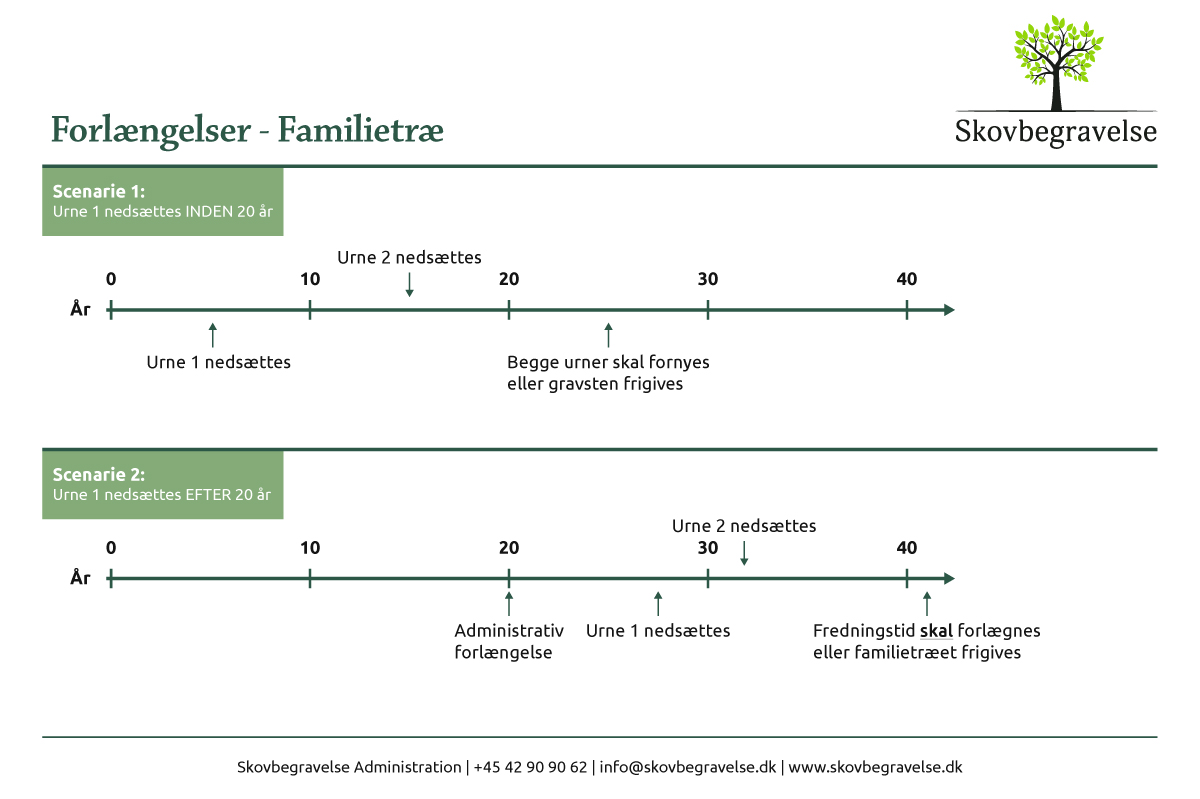En reservation og et forhåndserhvervet gravsted gælder i 10 år med undtagelse af familietræer hvor perioden er 20 år fra starten. Derefter kan gravstederne forlænges med 10 ad gangen.